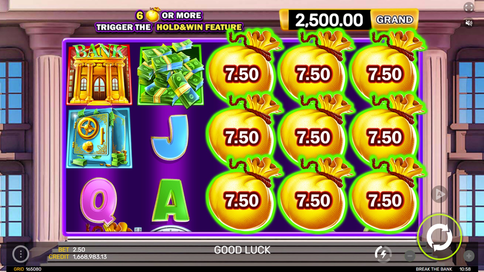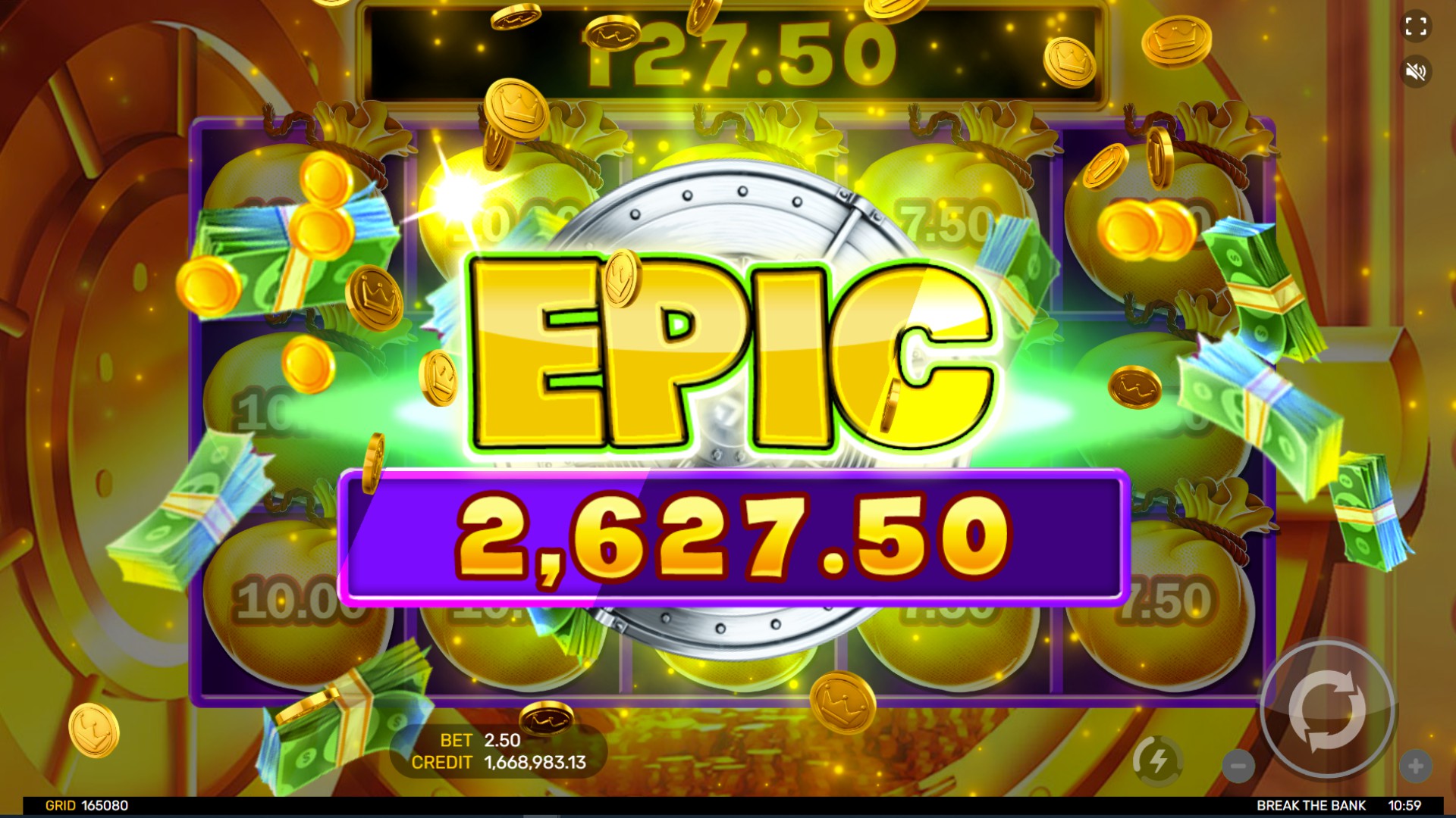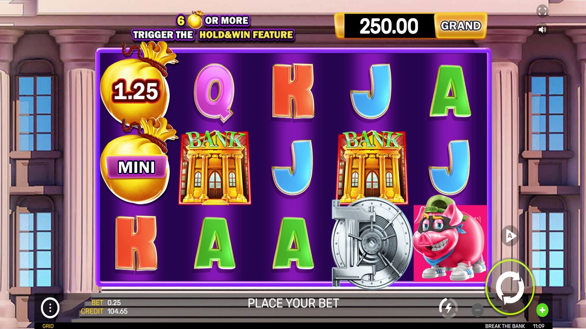Join the chase in ‘Break the Bank', where Porky Pete, the notorious pig bandit, outruns Officer Barkington, the keen police dog, in a whimsical slot game adventure. In the heart of Swinetropolis, each spin unfolds a hilarious caper, brimming with chase sequences and big win opportunities. Will Barkington outwit Pete in this comedic showdown, or will Pete once again outsmart the law? Excitement escalates in 'Break the Bank' with features like free games, BIG SYMBOLS, and the Hold and win feature, where filling the reels with Money bags could land you the Grand jackpot. It's a race against time and wits in this high-stakes, laughter-filled slot adventure.