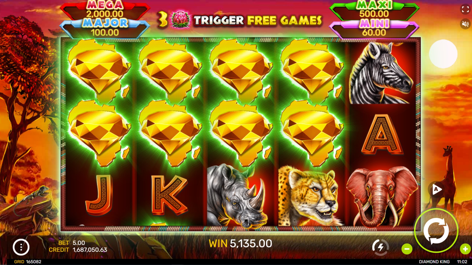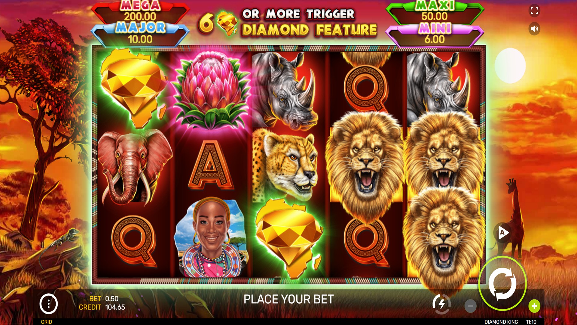 Venture into 'Diamond King,' where the majestic African savannah sets the stage for an exhilarating slot experience. Join forces with the elephant, cheetah, and zebra in a quest for the fabled Diamond King's treasure. Each spin on this vibrant slot unveils wild safari symbols and shimmering diamonds, leading you closer to untold wealth. Feel the rhythm of tribal drums as free spins and bonus rounds enhance your journey to the legendary treasure. In 'Diamond King,' the spirit of the wild is not just alive – it's rewarding, offering a thrilling adventure under the African skies.
